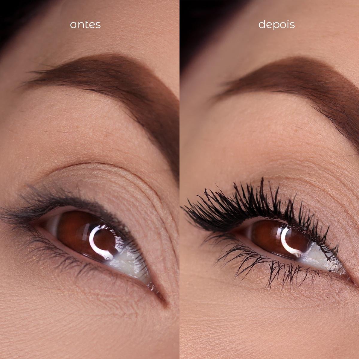 Aplique o produto da raiz dos cílios até as pontas em movimentos de ziguezague.