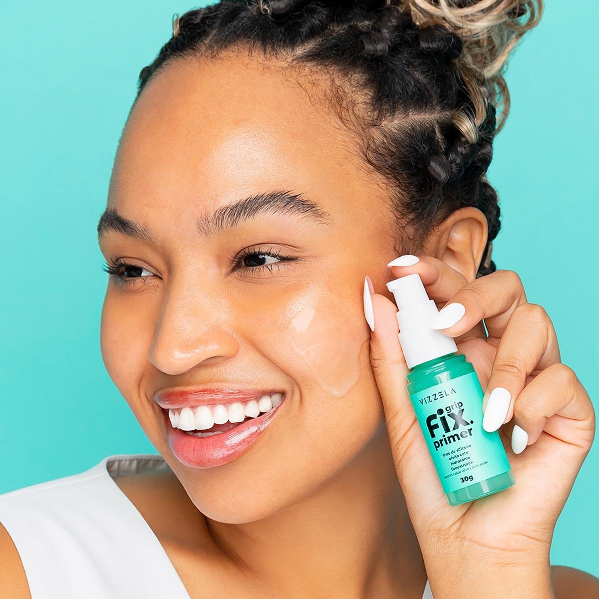 O Grip Fix Primer Vizzela é um primer com efeito cola, desenvolvido com uma tecnologia de adesão que garante alta fixação da maquiagem na pele.